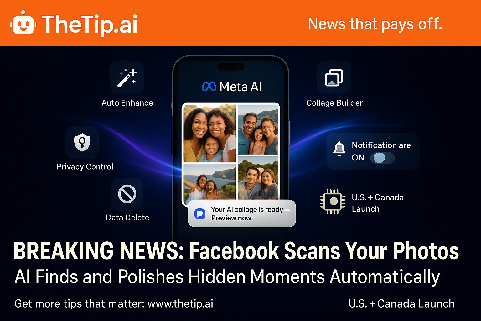 Facebook launched AI photo curation letting Meta scan your camera roll for hidden moments - the system polishes forgotten shots, creates collages automatically, and suggests posts you never bothered making manually.