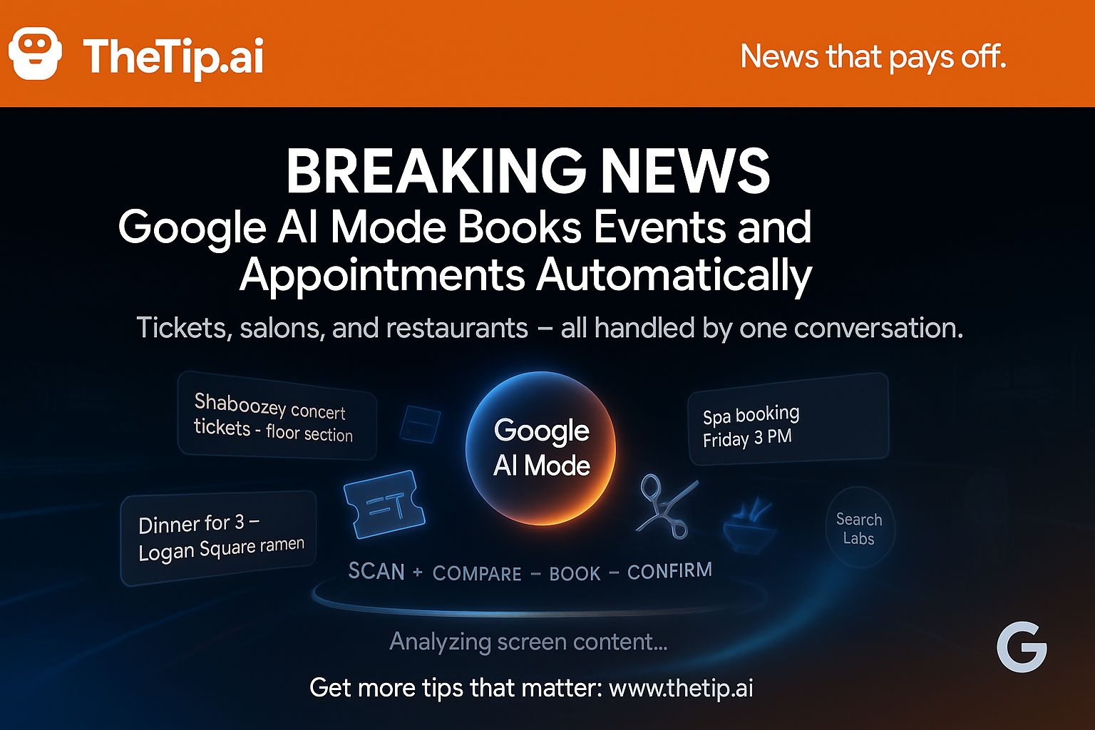 Google just expanded AI Mode adding agentic booking for event tickets and beauty appointments - the system searches multiple sites finding real-time availability matching specific preferences then links directly to purchase pages without manual comparison shopping.