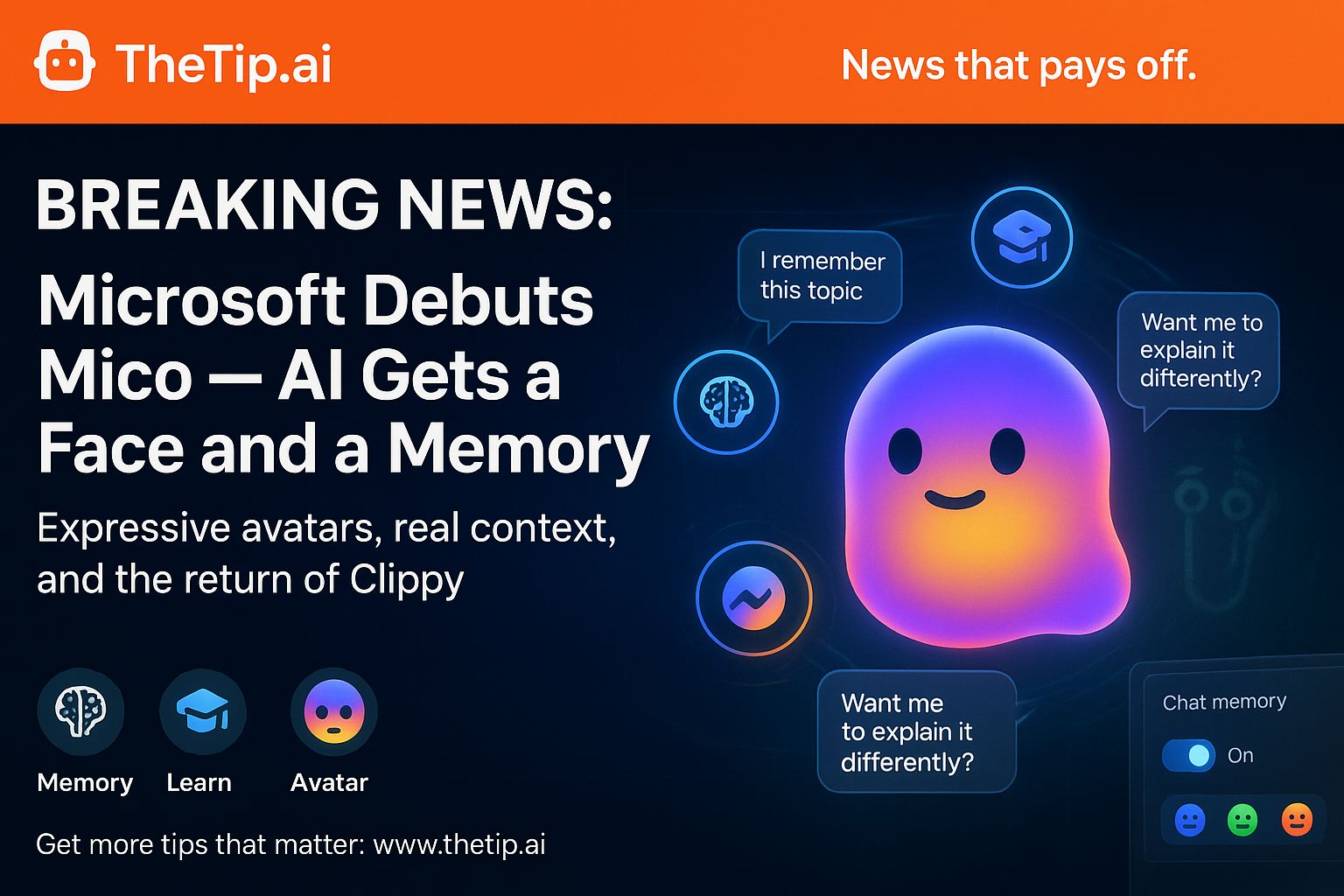Tap it enough times and it transforms into Clippy as an Easter egg, with memory features rolling out in the U.S., Canada, and U.K. alongside new tutoring modes and personality adjustments.