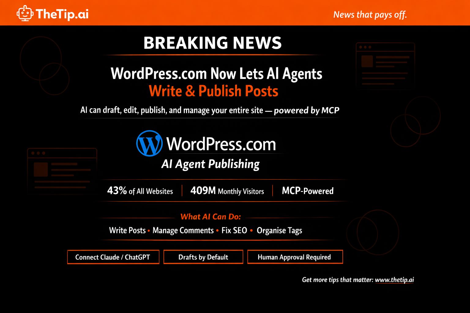 If you own WordPress.com site: AI agents can now handle content creation, comment management, SEO optimization.